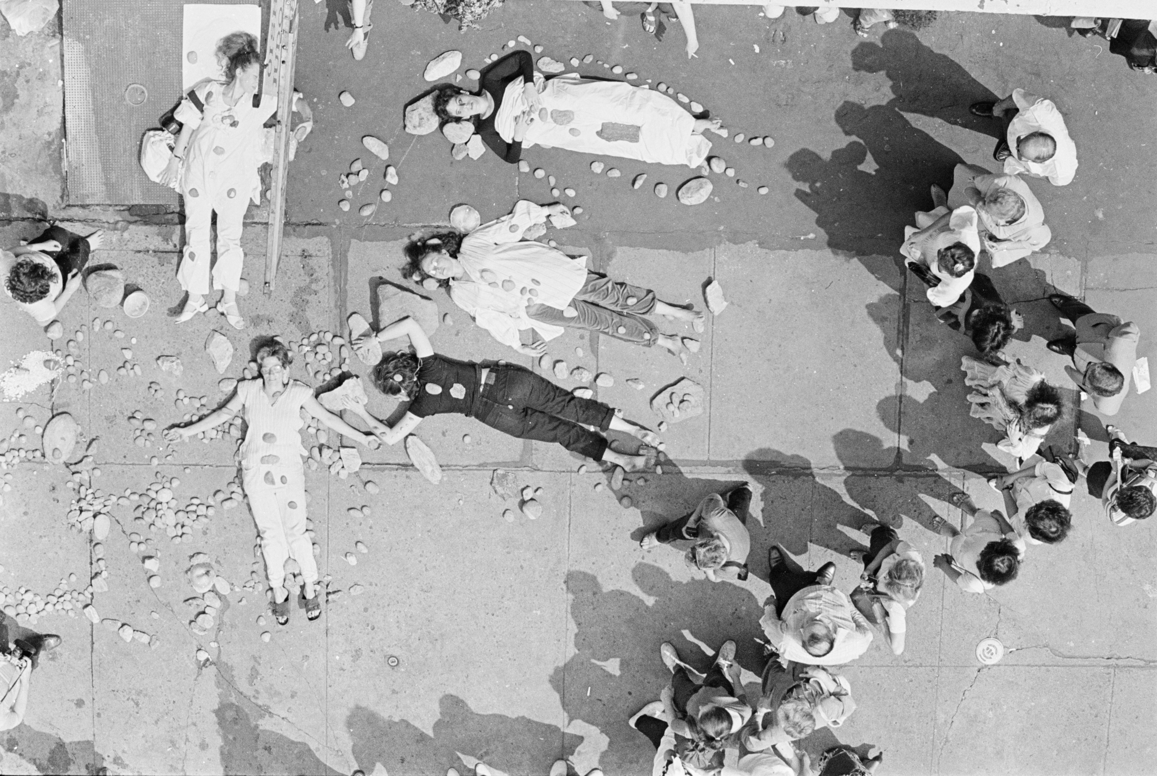 Activism and community-building have been central to Damon’s feminist practice since the 1970s. A leader among lesbian activists in New York, she co-edited the third issue of Heresies, Lesbian Art and Artists (1977), and participated in the first lesbian art show in the U.S. (1978), curated by Harmony Hammond at 112 Greene Street, and The Great American Lesbian Art Show at the Woman's Building in Los Angeles (1980). Her early performances addressed the erasure of women’s narratives from history (Blind Beggarwoman, 1979-80, alluding to Homer), and gender-based violence (7,000 Old Year Woman, 1977-78; Rape Memory, 1978-79; What Do You Think About Knives?, 1980-81). Their non-conformist courage consists not just in their subjects but – strikingly – also taking them out to the streets of New York and other cities, often without an institutional umbrella. All of them placed woman’s agency in the center of the public space. Her performances as healing rituals soon grew to include concern for the environment (A Shrine for Everywoman, 1980-88 and Meditations with Stones for the Survival of the Planet, 1982-late 1980s), and she devoted her later practice to public space projects focused on preserving living water.